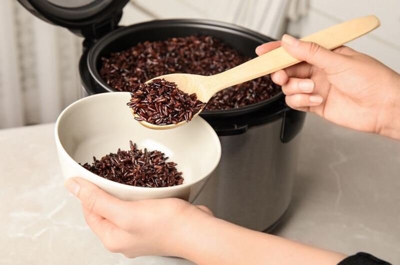 - Ngâm gạo lứt trong nước nóng trước khi nấu để giúp cơm nở đều, mềm và dẻo hơn khi nấu chín.